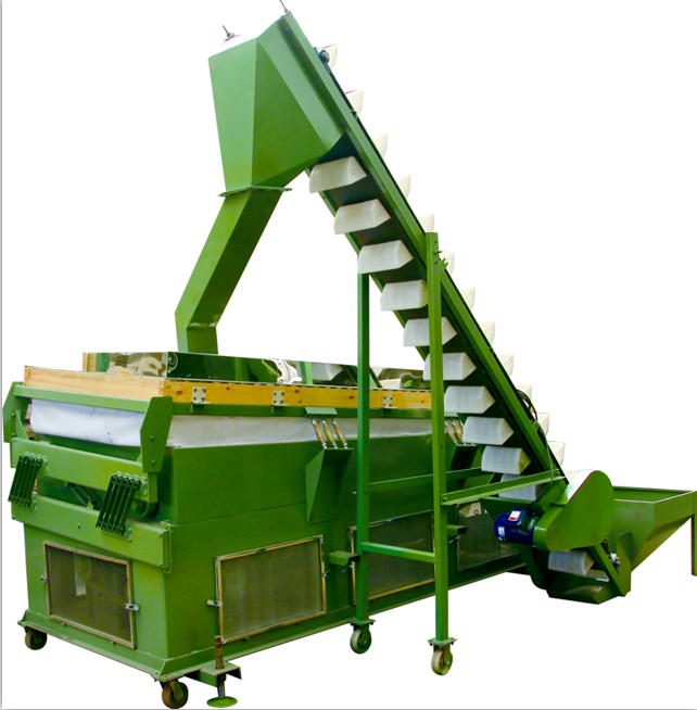 比重式清选机主要按比重差异分选外形尺寸基本一致的颗粒状物料,把比重较大和较小的本分从原始物料中分离出来。在种子加工中,只要用于去除混杂在好种子中的沙石土块等比重较大的杂质和部分不饱满的种子、虫蛀种子、霉变种子、发芽种子、变形种子以及其他比重较小的杂质。