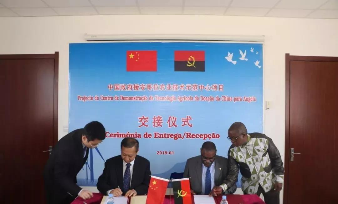 2019年1月25日,中国政府援助安哥拉政府农业技术示范中心项目交接仪式在罗安达举行。中国驻安哥拉大使崔爱民、安代外长洛佩斯、农业和畜牧业国务秘书贝滕科特、林业国务秘书摩达、使馆经商参赞李永军等出席交接仪式。崔爱民大使与洛佩斯代外长分别代表两国政府签署项目交接证书。